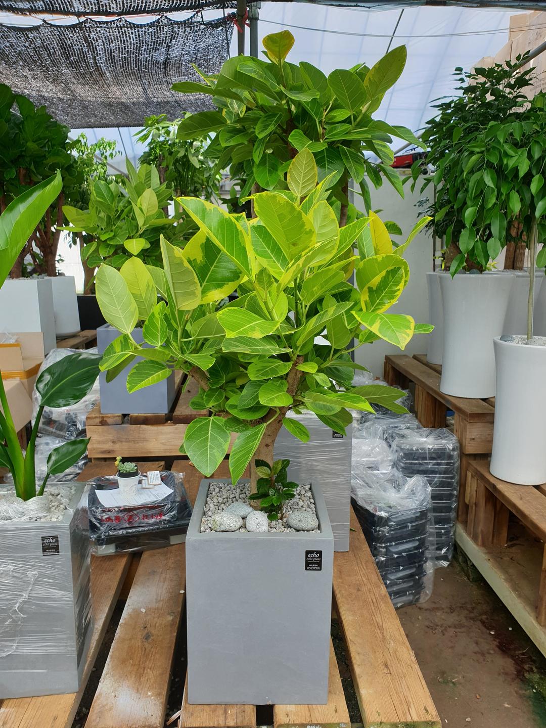 뱅갈고무나무는 햇빛을 많이 받으면 잎이 연노란색이 돼요!