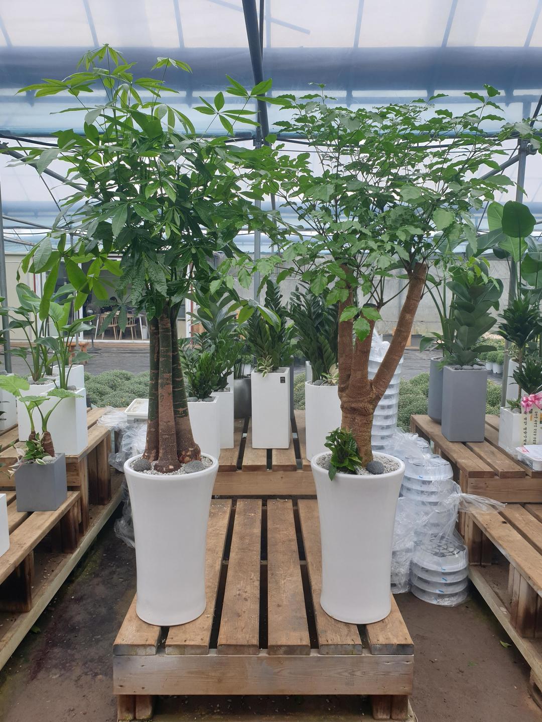 깔끔한 도자기 화분에 식재한 파키라와 해피트리💚