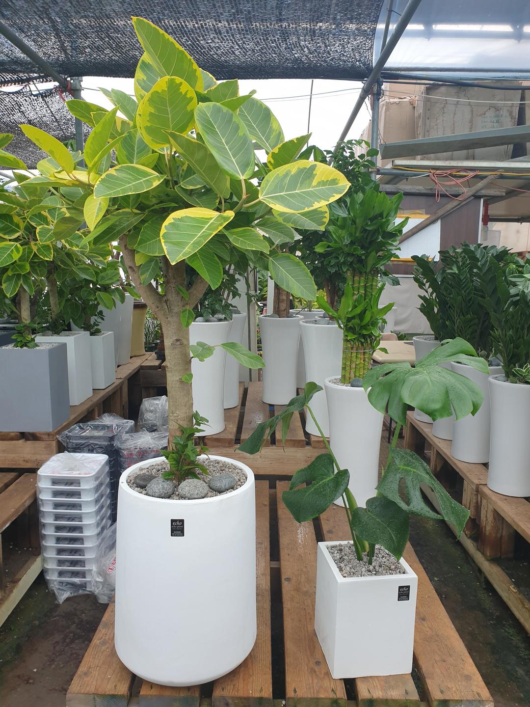 깔끔한 시멘트 화분에 식재한 뱅갈고무나무와 몬스테리아💚