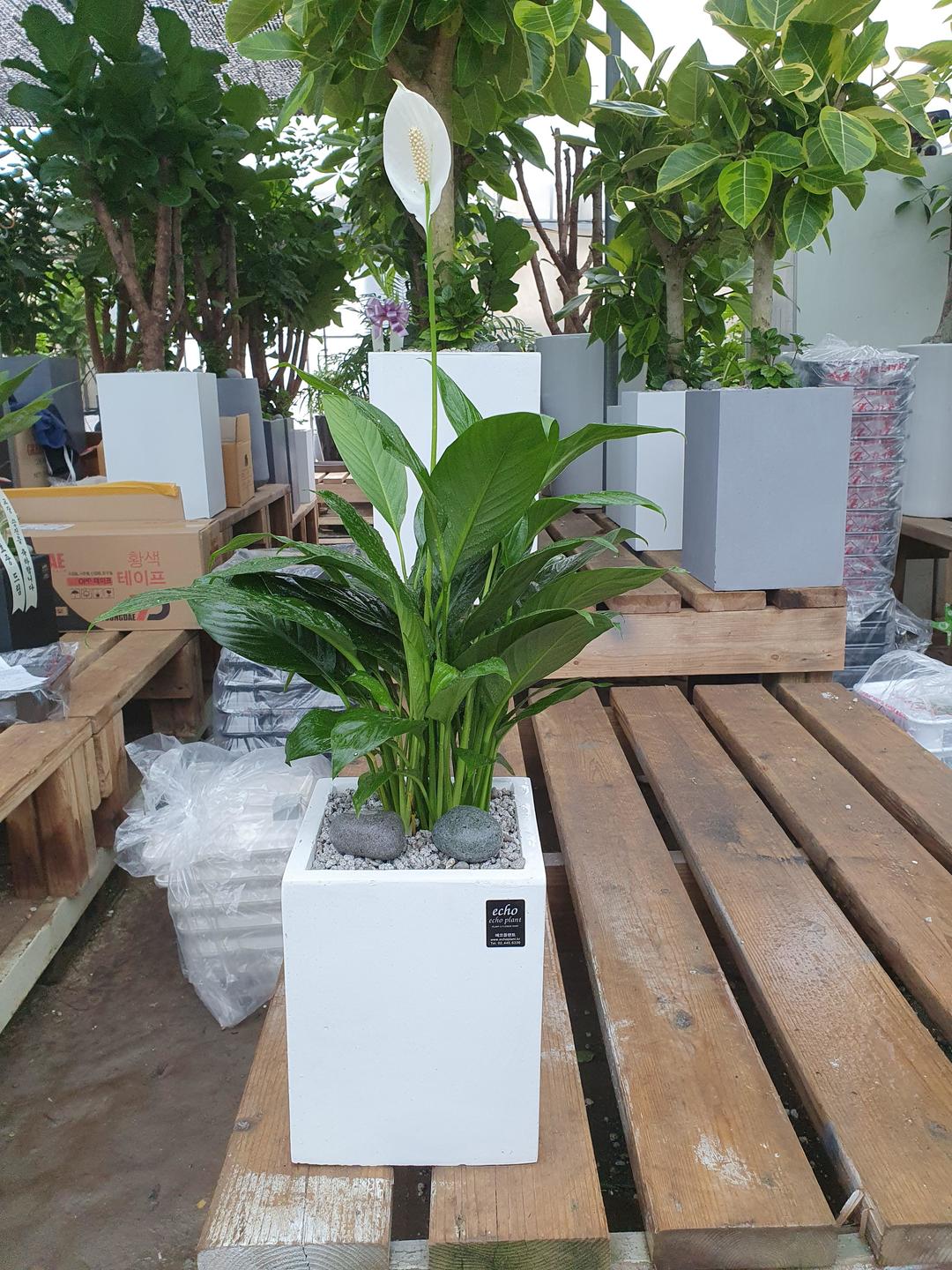 깔끔한 흰색 화분에 식재한 스파티필름💚