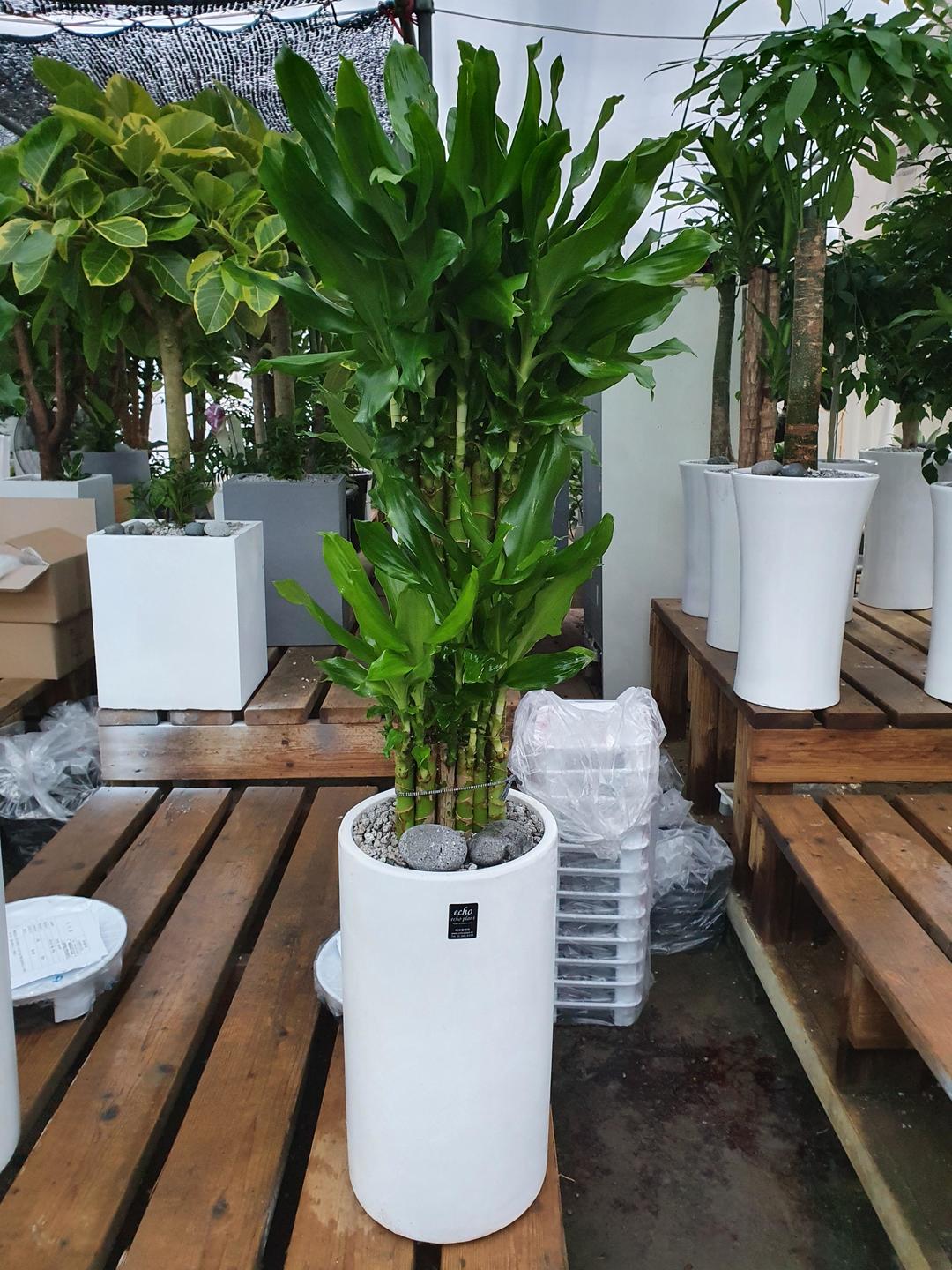 깔끔한 흰색 화분에 식재한 싱그러운 황금죽💚
