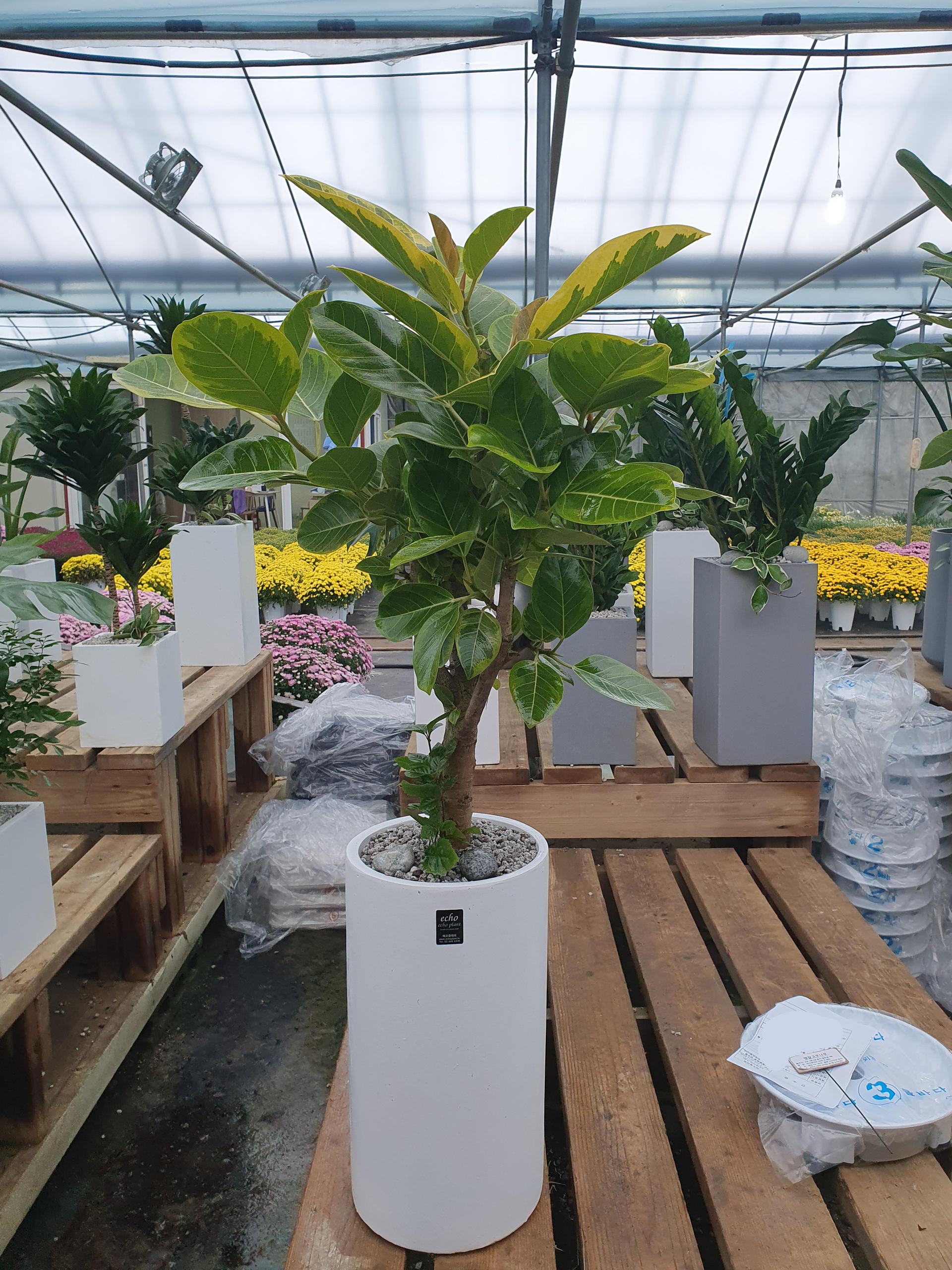 깔끔한 흰색 화분에 식재한 뱅갈고무나무💚