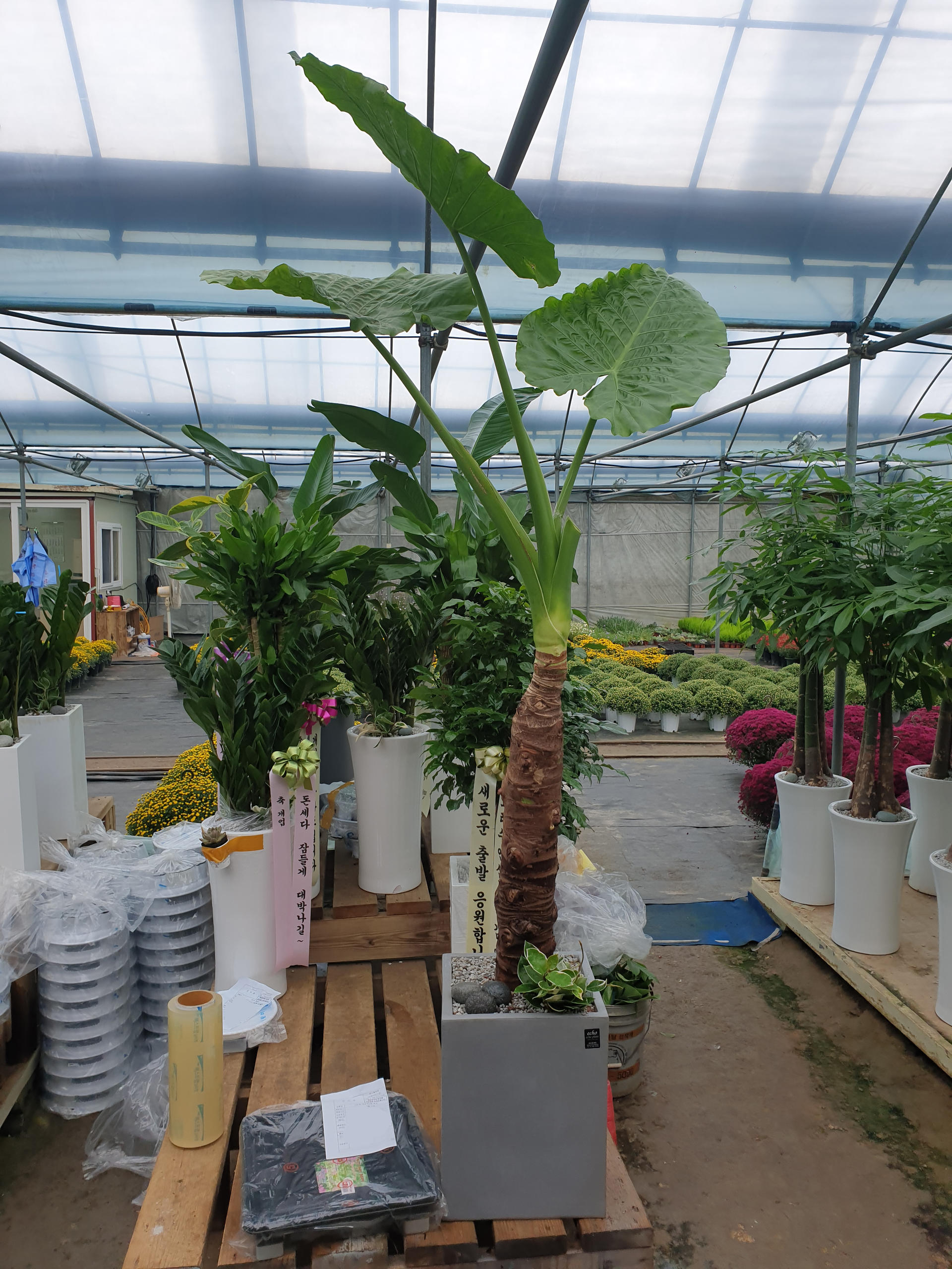 쭉쭉 뻗은 목대에 커다란 잎을 가진 알로카시아💚