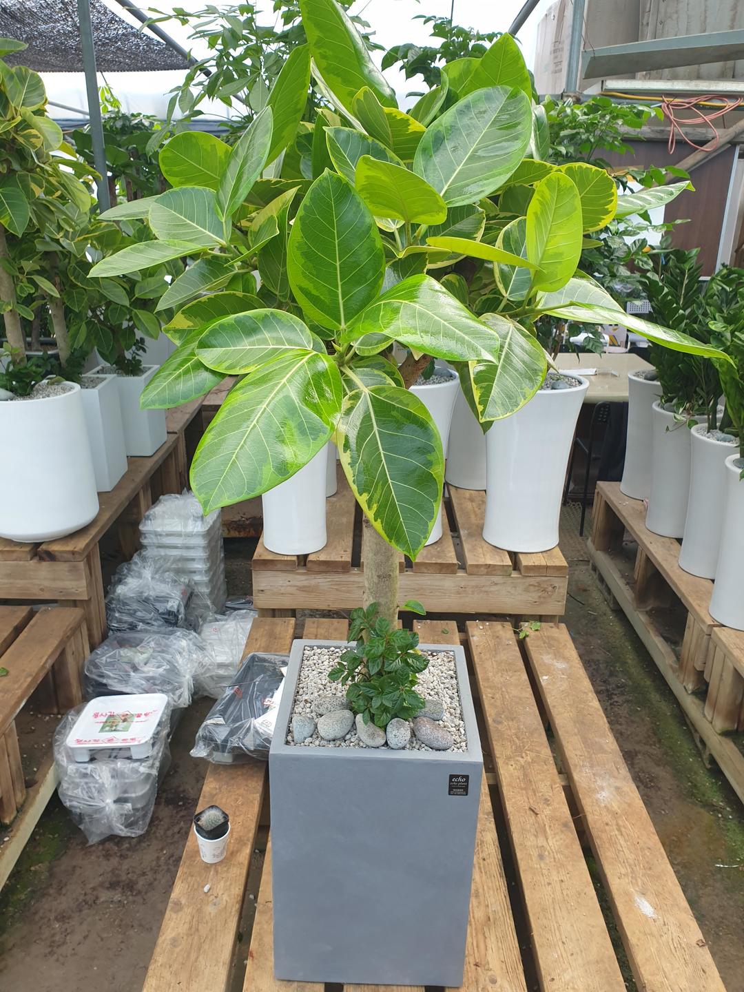 연노랑 빛깔 무늬의 잎이 예쁜 뱅갈고무나무💚