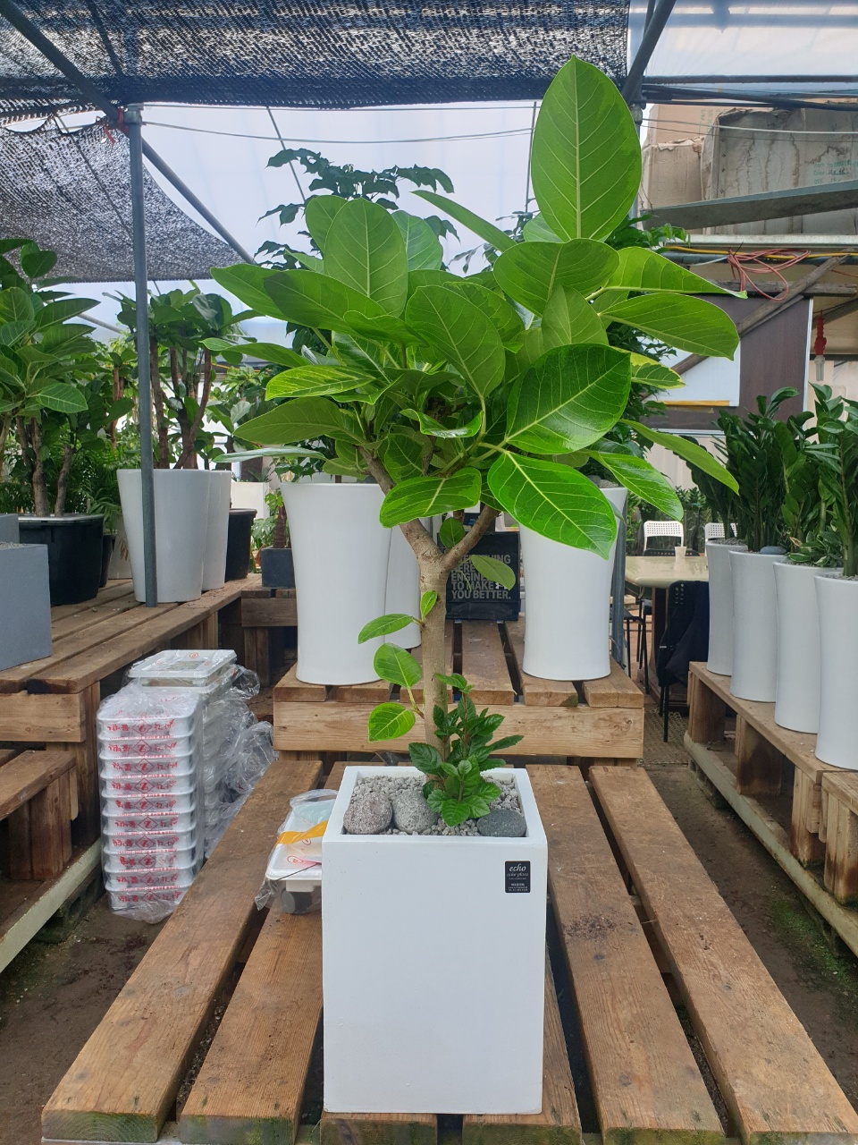 연두색 빛깔 무늬의 잎이 예쁜 뱅갈고무나무💚